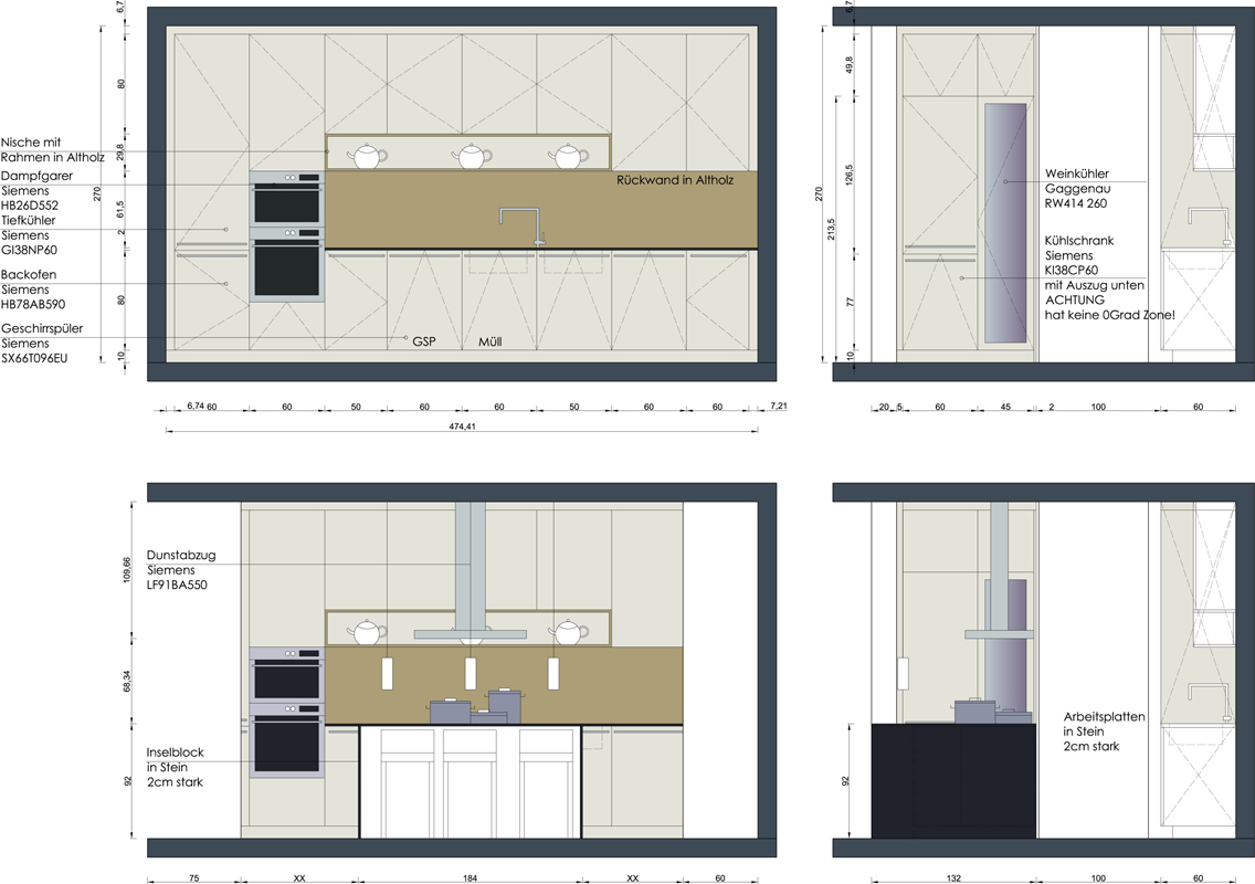 Schrankräume, Küche, Bücherregale und Badezimmermöbel sind Maßanfertigungen, die von mir geplant und mit meinen Tischlern produziert wurden. Dabei habe ich das Konzept erstellt und die künstlerische und organisatorische Leitung übernommen. Wir haben nur mit den hochwertigsten Materialien gearbeitet, was dem Objekt einen besonders exklusiven Touch gibt.